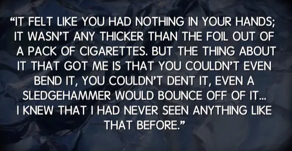 Among the scattered debris was a strange "memory metal." Light as paper, smooth, it couldn't be cut, scratched, or burned, yet could be temporarily bent and would return to its original shape. The properties of this material were completely beyond known technology, both then and even now.TOP 3: Consistent Descriptions of Alien Beings from Multiple Witnesses